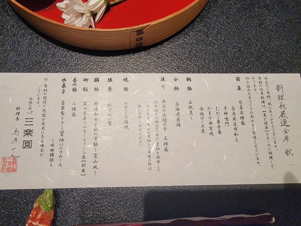 今回利用させていただいたのは富山県砺波市にある「鳥越の宿 三楽園」さんです。
