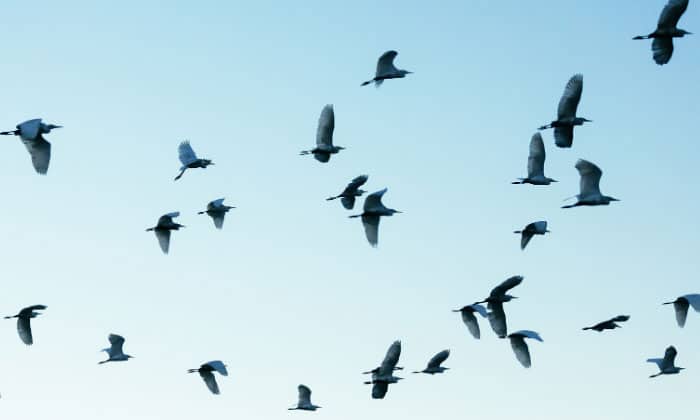 彼らはどこへ飛んでゆくのでしょうか。あんなに寄り合っていれば寒さもへではないかもしれないし、どこかで群れから逸れてはぐれる鳥もいるのかもしれません。